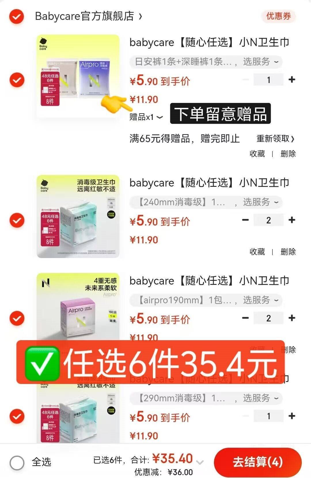 小N姨妈巾发車 babycare 消毒级卫生巾/安睡裤 任选6件35.4亓,好用又放心好单发报员2025年12月23日 16:480举报 ——小N姨妈巾发車——babycare 消毒级卫生巾/安睡裤https://u.jd.com/ADuo5Rt任选6件35.4亓,好用又放心*赠护垫24片*2包 卫生巾5片复制文案