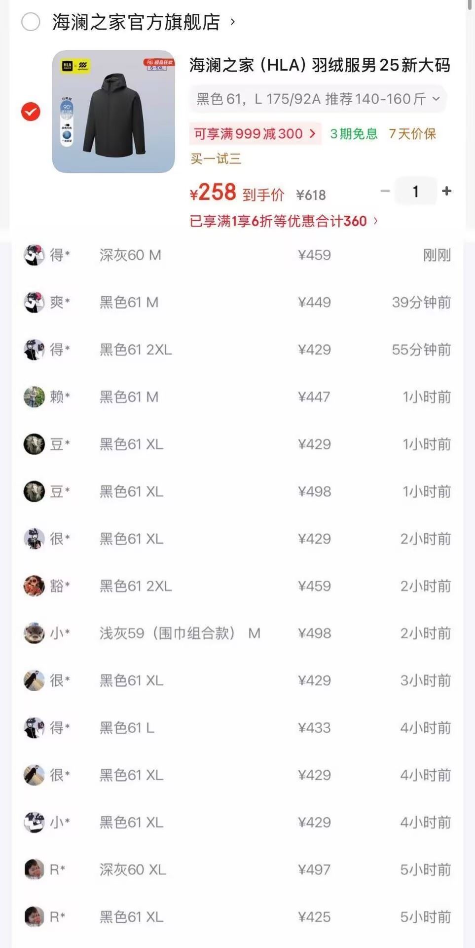 补了,速度神价海澜之家三合一羽绒服货号HWRAW4J026A