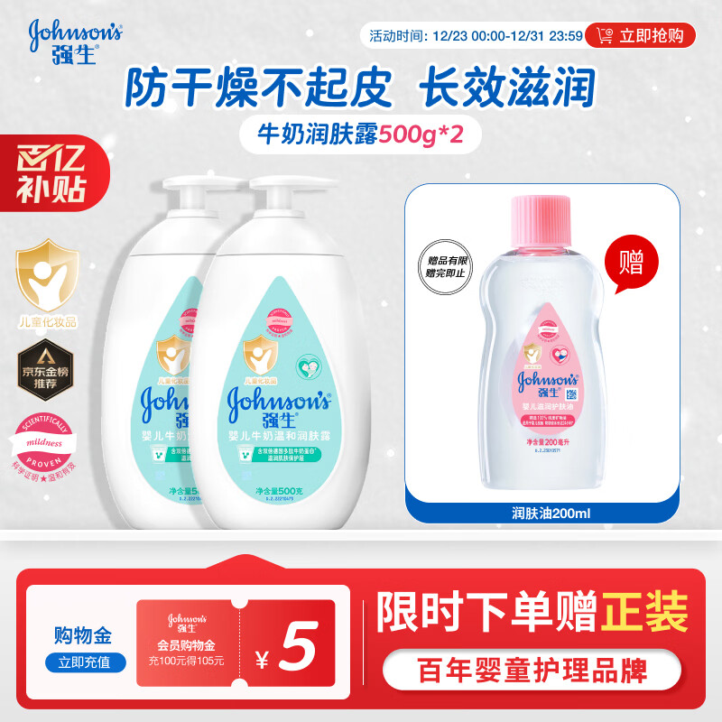 个护抄底发车 先领69-18券 自营包邮 强生 婴儿牛奶沐浴露 500g 2瓶