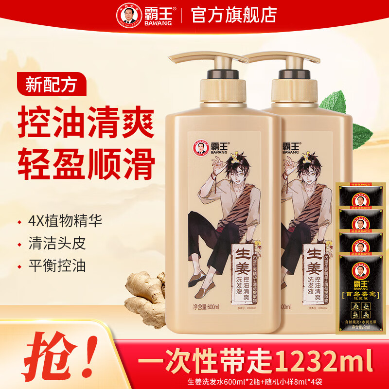 霸王 生姜洗发水600ml*2瓶 小样8ml*4袋