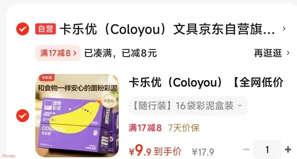 领17-8 卡乐优 Coloyou 16袋面粉彩泥随行装 9.9好单发报员2025年12月24日 10:070举报 领17-8 https://coupon.m.jd.com/coupons/show.action?key=c7m2ces1o5ad416c922c92ca685b3163&roleId=1816726306卡乐优 (Coloyou)16袋面粉彩泥随行装【9.9】https://u.jd.com/AgQAe4Y 复制文案