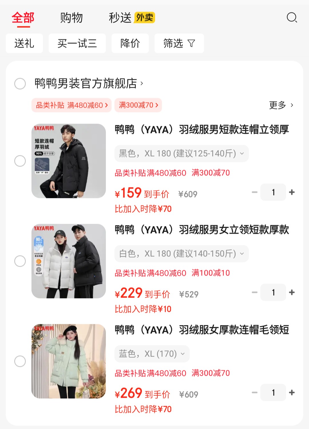 鸭鸭 羽绒服男女立领短款厚款【229】
