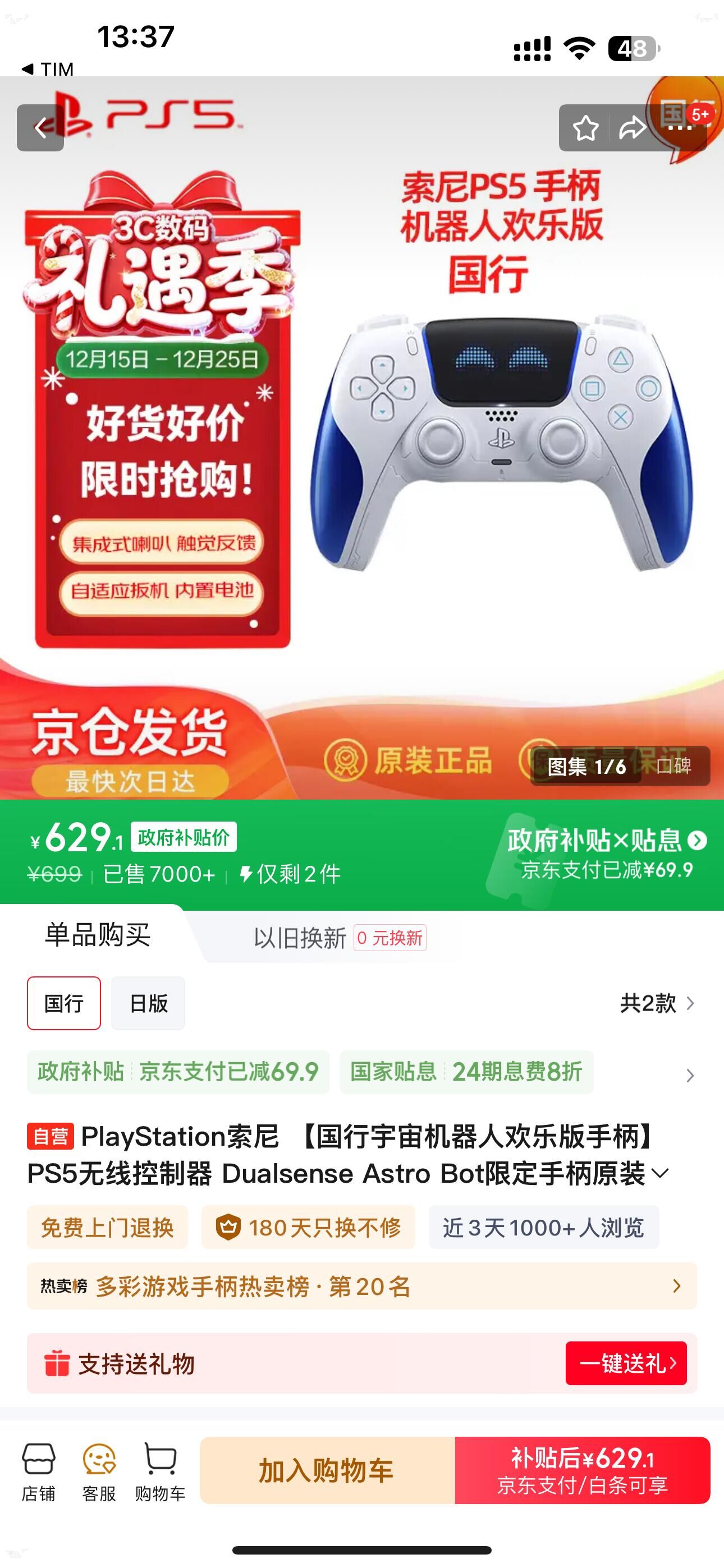 索尼 国行宇宙机器人欢乐版手柄 PS5无线控制器 629 囯补 好单发报员 2025年12月24日 13:39 0 举报 索尼 【国行宇宙机器人欢乐版手柄】PS5无线控制器【629】囯补https://u.jd.com/A1qpnue 复制文案