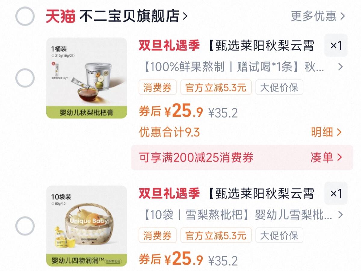 不二宝贝枇杷秋梨膏22条 还有雪梨枇杷水可选25元.9好单发报员2025年12月24日 22:150举报 不二宝贝枇杷秋梨膏22条还有雪梨枇杷水可选25元.9https://m.tb.cn/h.7ftVrIt复制文案