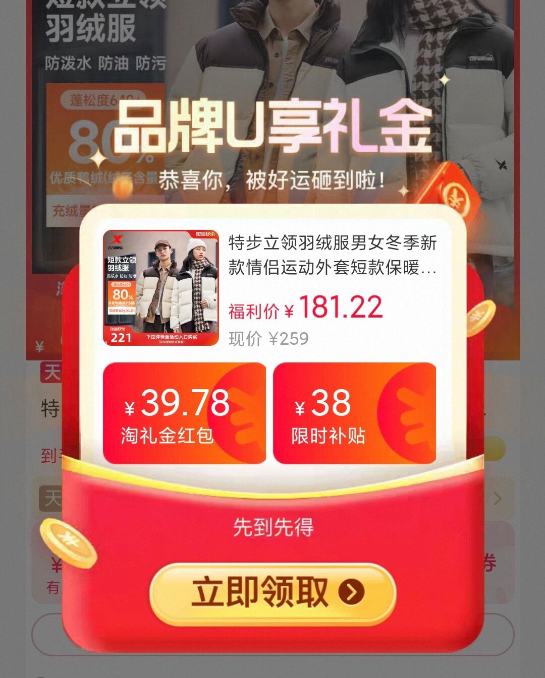 2.速度领礼金 加购物车 130-150元左右到手 特步官方旗舰店好单发报员2025年12月25日 10:050举报 2.速度领礼金 加购物车130-150元左右到手【特步官方旗舰店】特步立领羽绒服男女冬季新款情侣运动外套短款保暖面包https://m.tb.cn/h.7UBGxsL复制本消息 打开桃宝查看复制文案