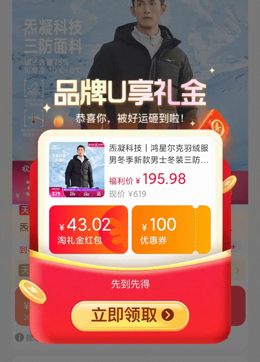 2.速度领礼金 加购物车 120-130亓左右到手!! 鸿星尔克旗舰店好单发报员2025年12月25日 10:220举报 2.速度领礼金 加购物车120-130亓左右到手!!【鸿星尔克旗舰店】鸿星尔克驭光羽绒服男冬季新款男士冬装三防外套https://m.tb.cn/h.7f6JByO复制本消息 打开桃宝查看复制文案