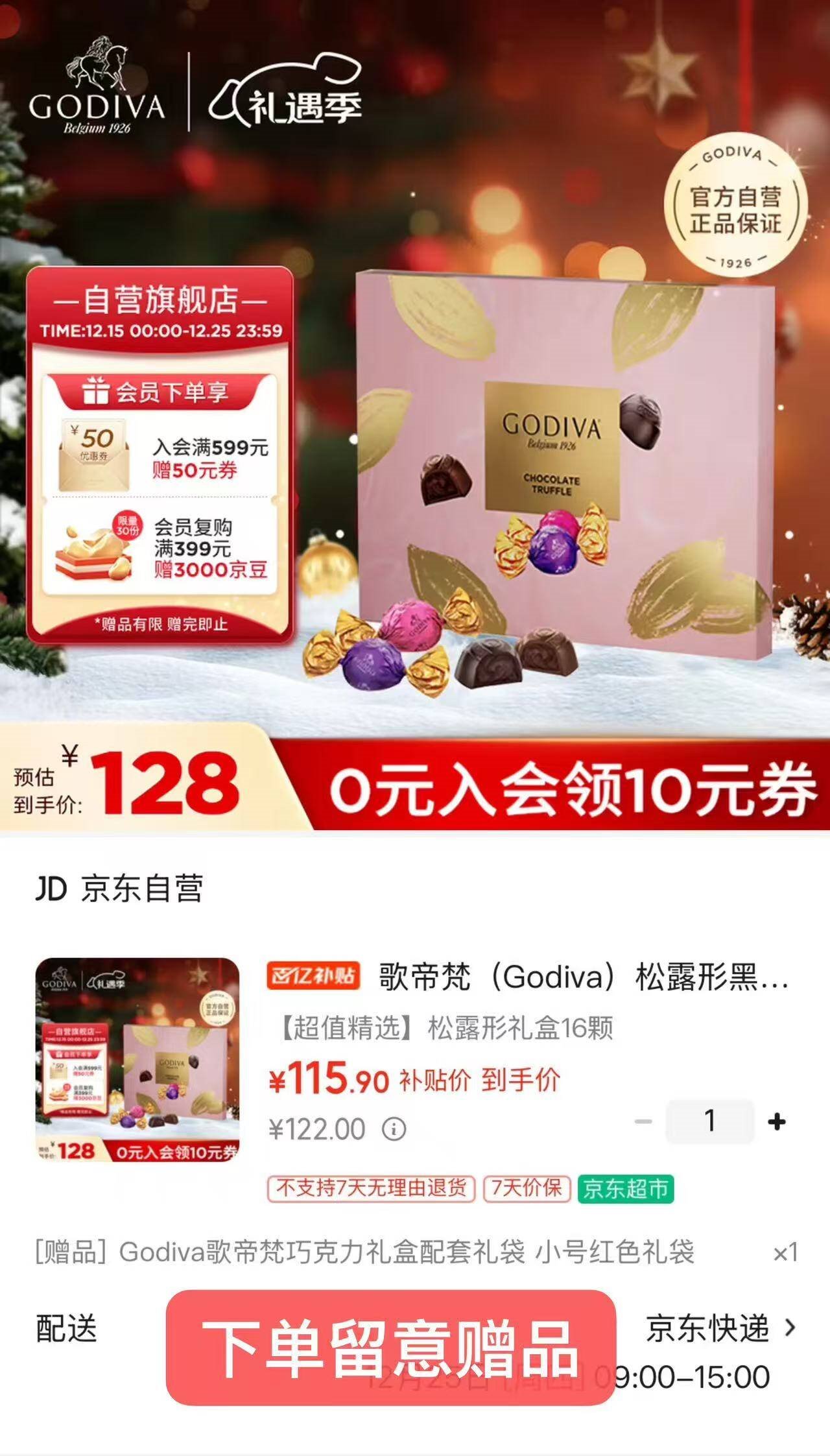 歌帝梵巧克力发車 歌帝梵 松露形黑巧巧克力16颗 122亓自营包邮,plus115.9亓好单发报员2025年12月25日 10:500举报 ——歌帝梵巧克力发車——歌帝梵 松露形黑巧巧克力16颗https://u.jd.com/A68xsMu122亓自营包邮,plus115.9亓*再赠礼袋 比利时皇室御用品牌复制文案