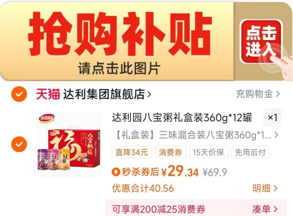 下拉详情拍,29.3亓 达利园八宝粥 360g*12罐好单发报员2025年12月25日 11:210举报 下拉详情拍,29.3亓达利园八宝粥 360g*12罐https://m.tb.cn/h.7Ud0vUS复制文案