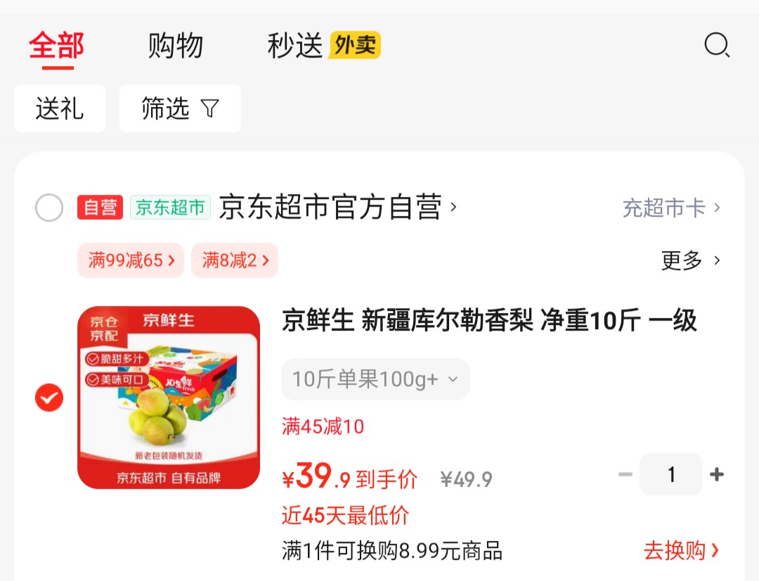 京鲜生 新疆库尔勒香梨 净重10斤 一级 单果100-120g 【39.9】