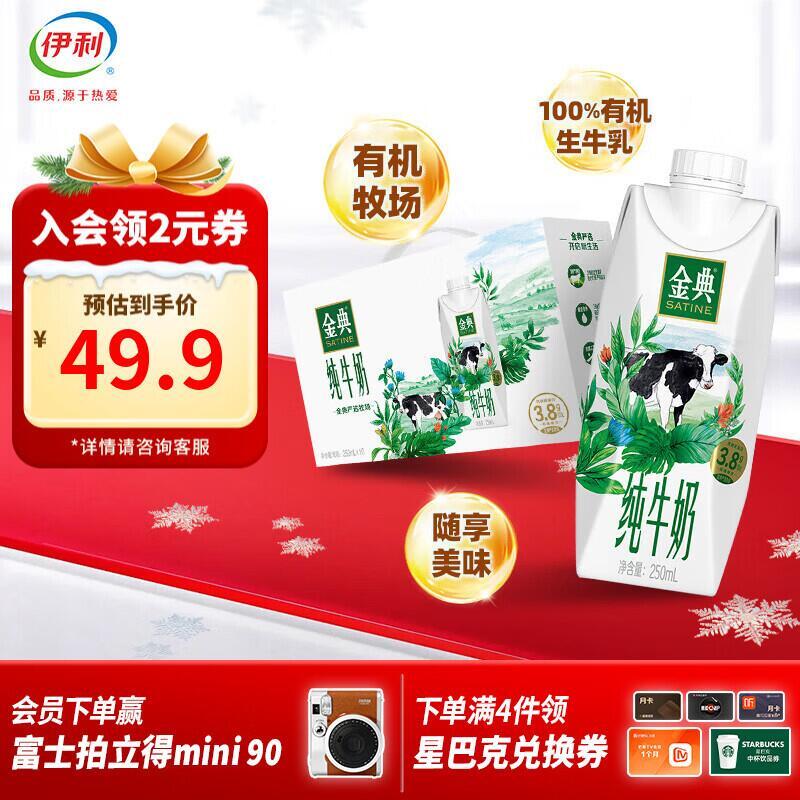 35.04元 金典高钙低脂牛奶250ml*12盒/箱