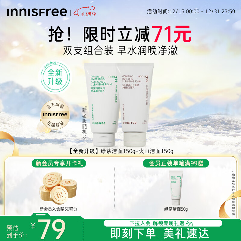 悦诗风吟(innisfree)火山泥洗面奶150g*2