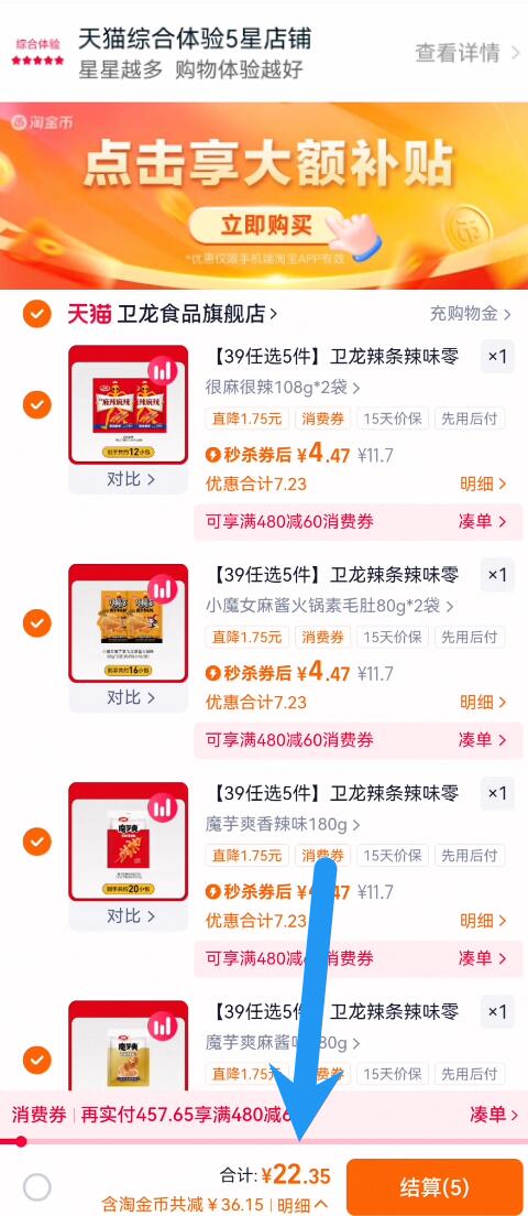 4.4亓/件速下拉详情拍 任拍5件22.3亓,叠7.4金币 需拍5个不同的选项好单发报员2025年12月25日 21:430举报 4.4亓/件速下拉详情拍任拍5件22.3亓,叠7.4金币需拍5个不同的选项【卫龙】辣味爆款零食组合https://m.tb.cn/h.7fIFkSa复制文案