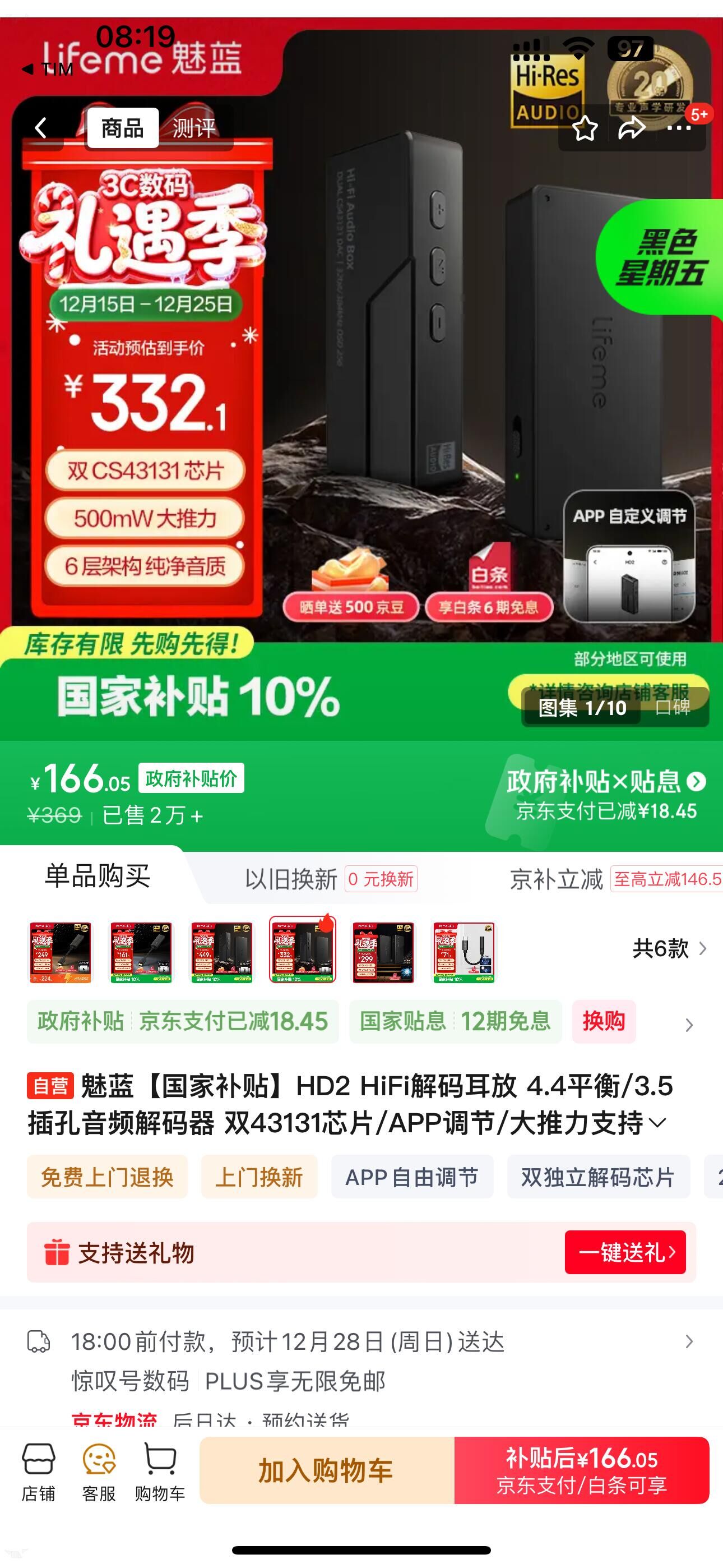 【166.05】魅蓝HD2 HiFi解码耳放 4.4平衡/3.5插孔音频解码器 双43131芯片/APP调节/大推力支持线控
