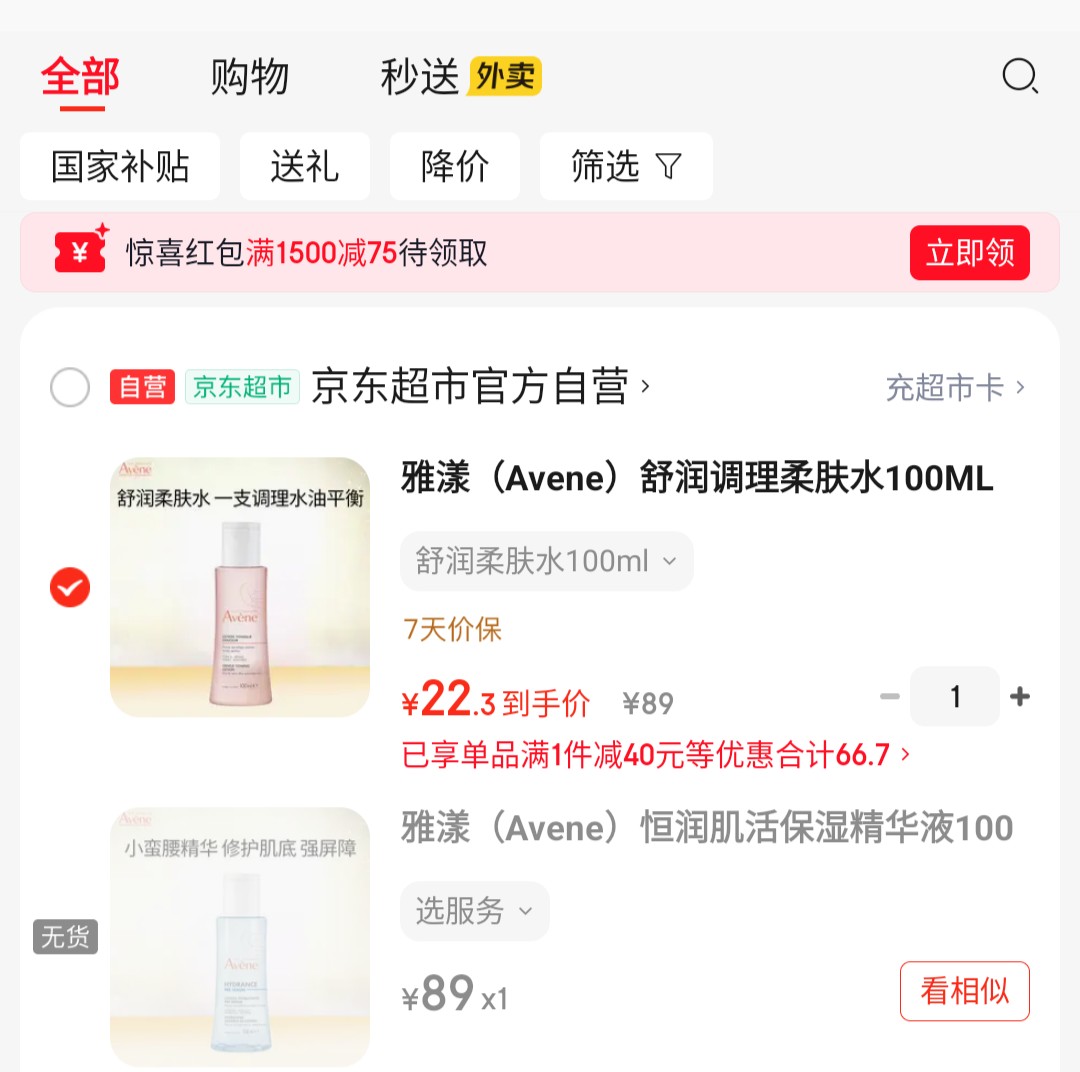 雅漾 (Avene)舒润调理柔肤水100ML 【22.3】