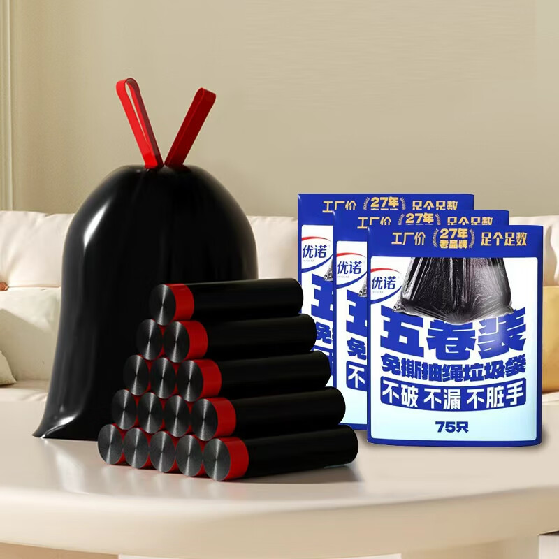 14.9元 洁成 抽绳加厚垃圾袋 225只