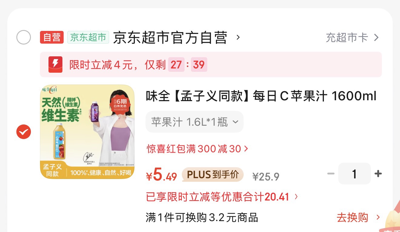 味全 每日C苹果汁 1600ml 100%果汁,弹4立减凑后【5.4】https://u.jd.com/A61BCmb