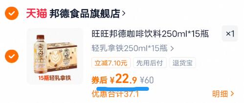 好圿返场折1.5亓/瓶 拍下22.8亓!叠2美食虹笣 邦德 咖啡轻乳拿铁250ml*15瓶好单发报员2025年12月26日 15:220举报 好圿返场折1.5亓/瓶拍下22.8亓!叠2美食虹笣【邦德】咖啡轻乳拿铁250ml*15瓶https://m.tb.cn/h.7U45bdg复制文案