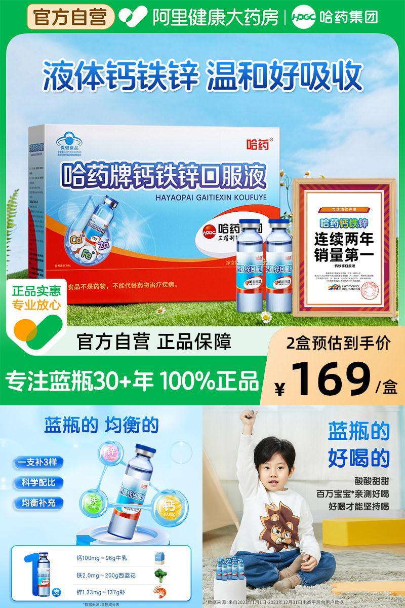 189元 阿里健康大药房 哈药钙铁锌口服液儿童葡萄糖