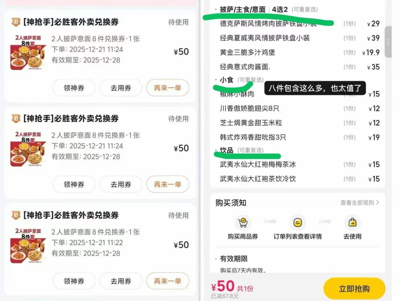 50元八件套必胜客快手慢 不是50就换家里人号试试 价格对反复拍,能拍很多份好单发报员2025年12月26日 21:430举报 50元八件套必胜客快手慢不是50就换家里人号试试价格对反复拍,能拍很多份http://dpurl.cn/BSY0DGez50块钱可以到手两份主食,4份小食,2杯饮品有效期7天可以跟店员说一下,派送地址写门店,直接在店里吃,划算哭了复制文案