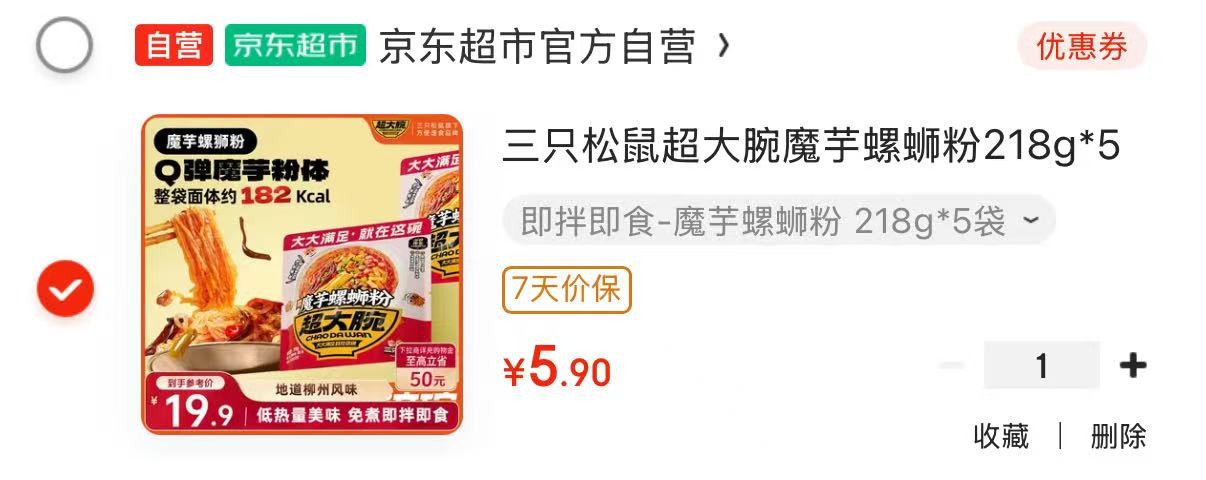 三只松鼠 超大腕魔芋螺蛳粉218g*5袋【5.9】