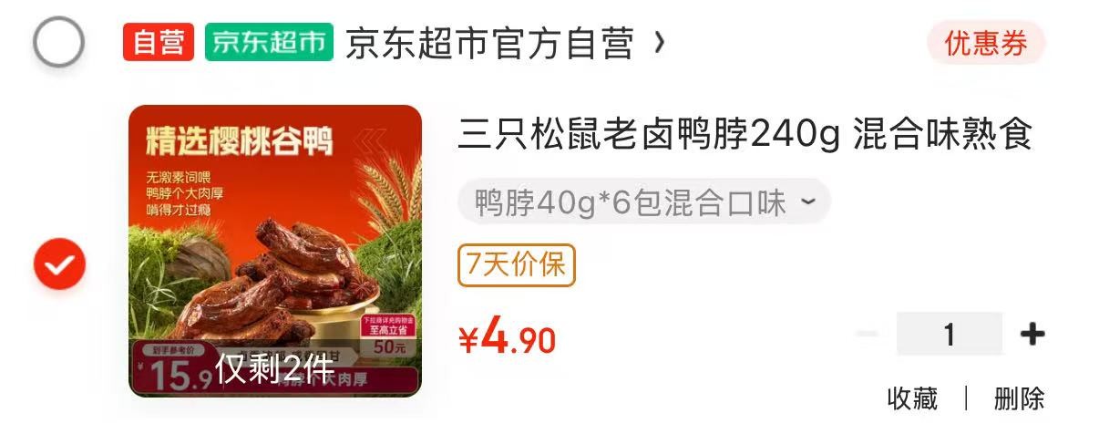三只松鼠 老卤鸭脖240g 混合味【4.9】