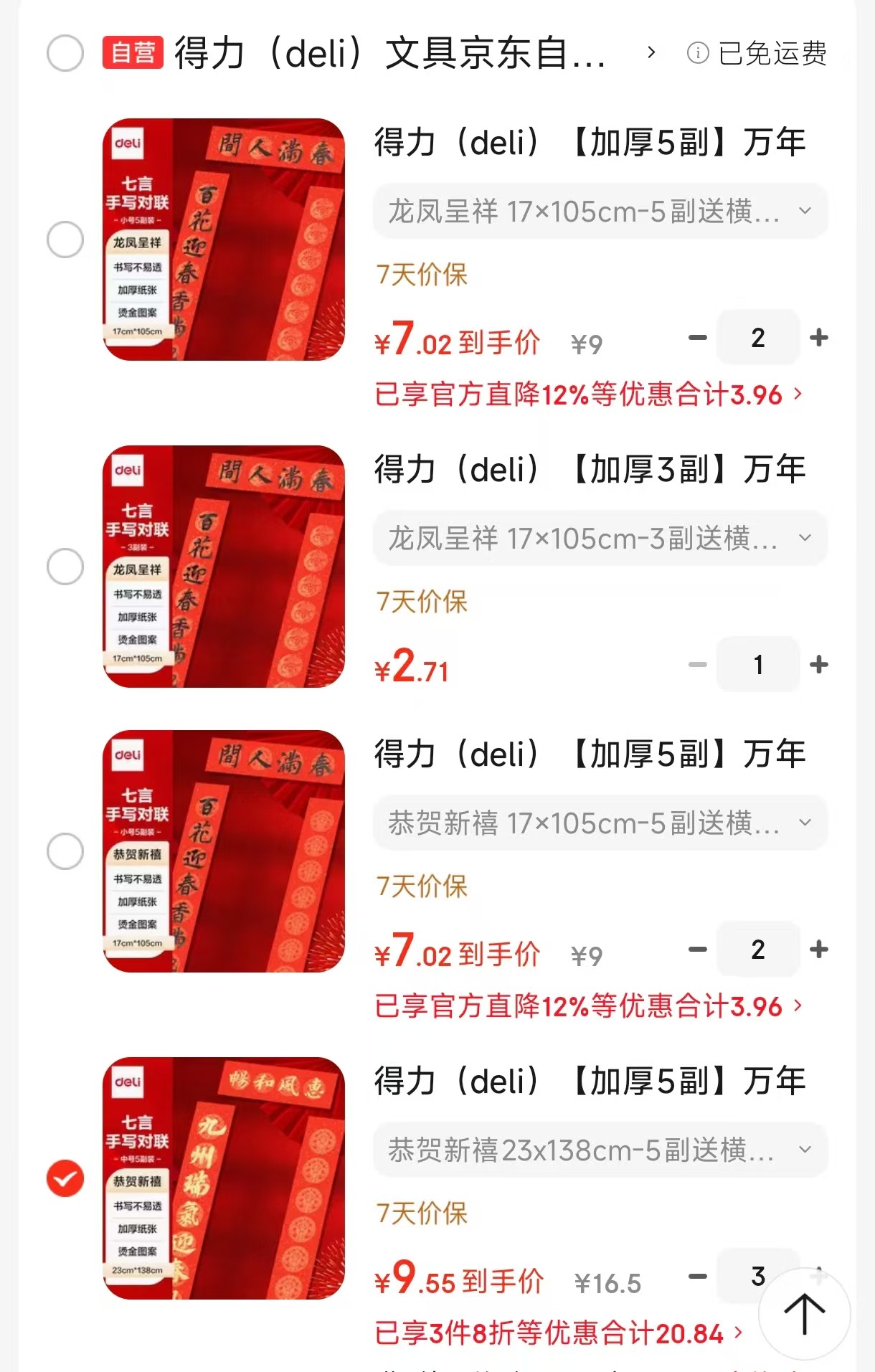 得力 万年红对联专用纸 七言恭贺新禧17*105cm*5套