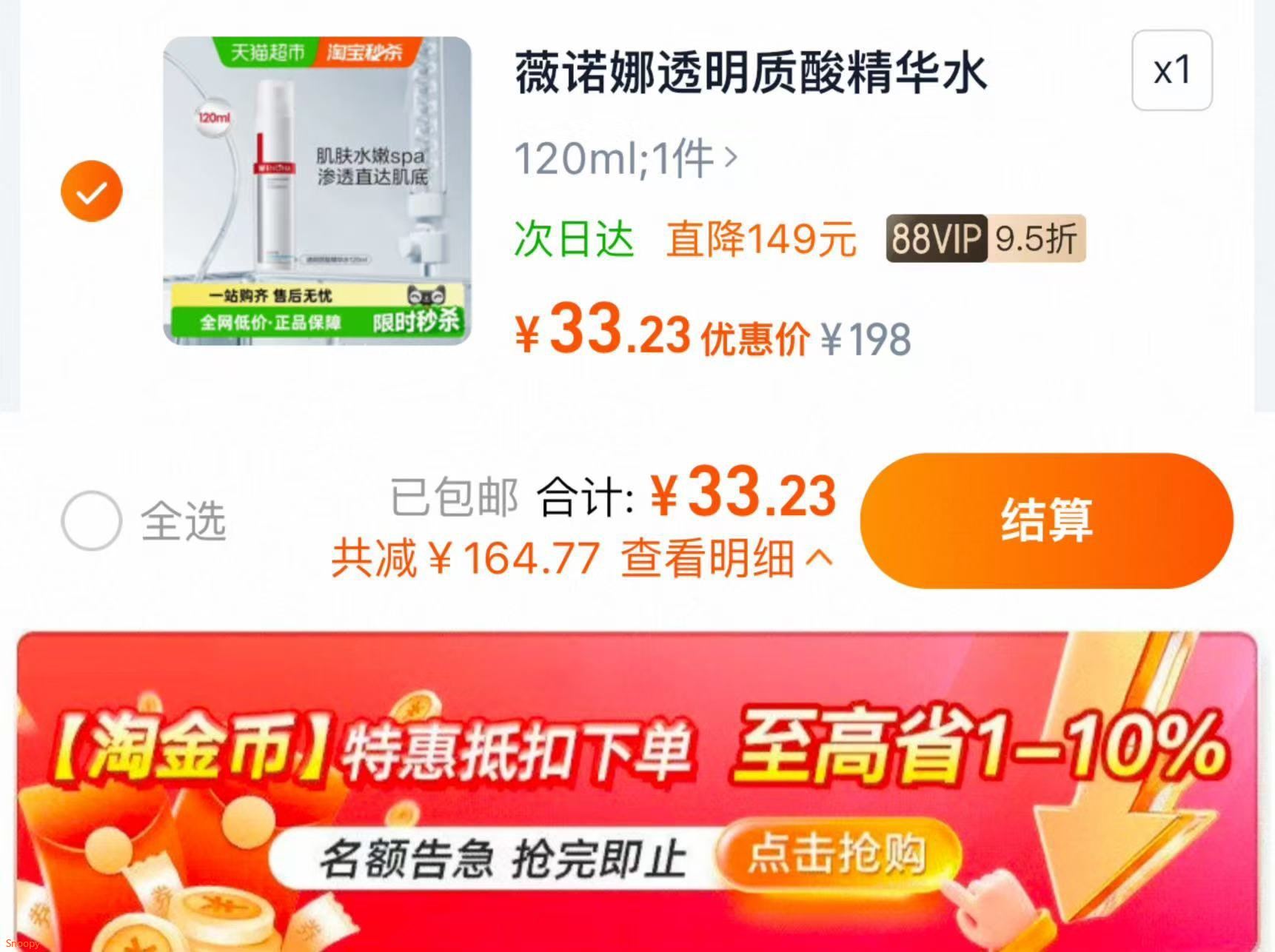 下拉详情页 进桃金币抵扣 叠限量礼金 vip拍下到手33.23亓 薇诺娜透明质酸修护精华水120ml好单发报员2025年12月27日 11:040举报 下拉详情页 进桃金币抵扣叠限量礼金 vip拍下到手33.23亓薇诺娜透明质酸修护精华水120mlhttps://m.tb.cn/h.75lpdUA复制文案