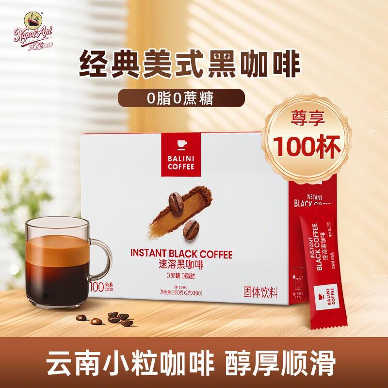 26.9 元火船黑咖啡粉冷热速溶0糖2g*100条