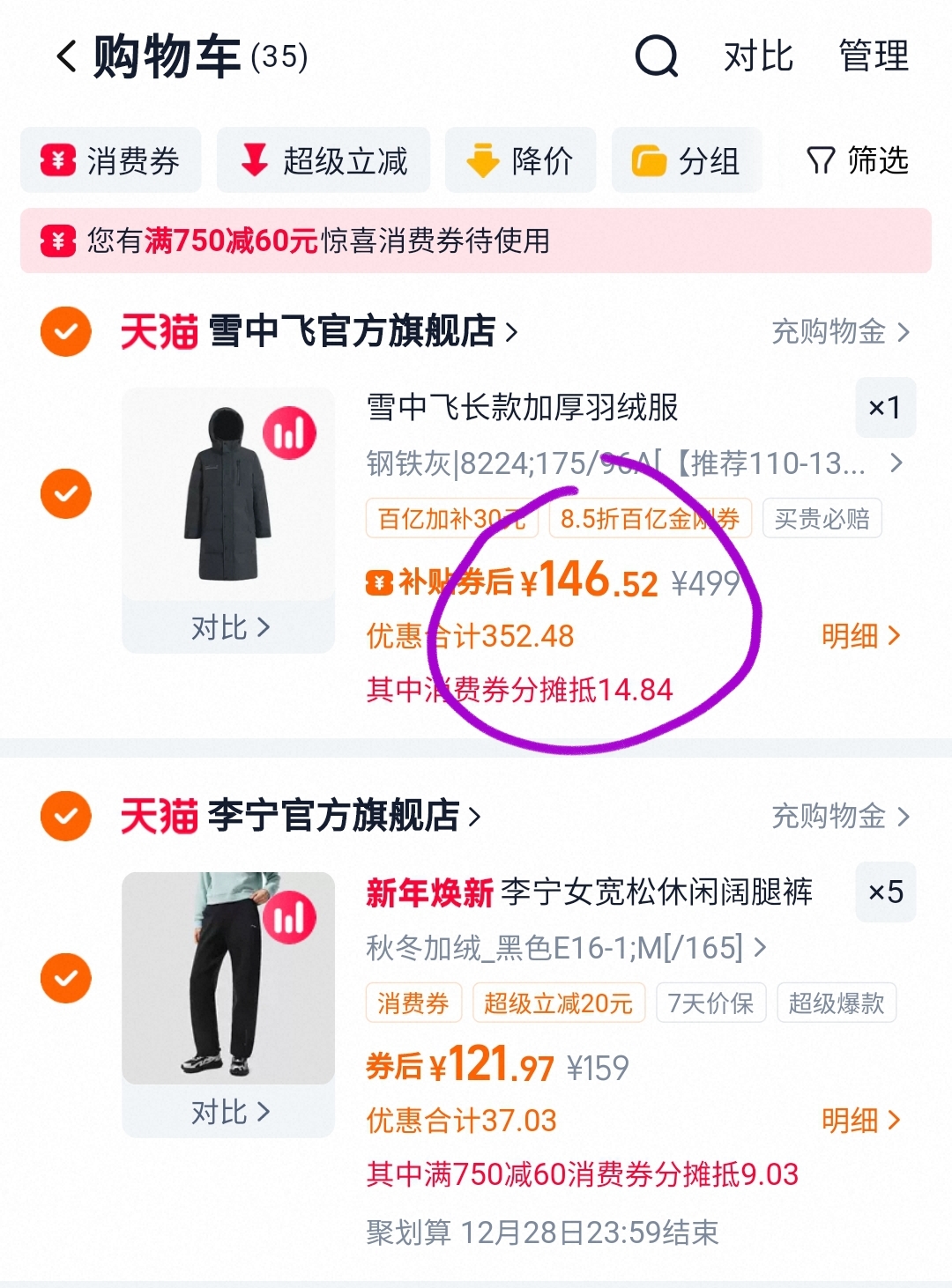 ④.凑单裤子加购 复制本消息打开桃宝查看 根据消费券大小提高凑单件数 好单发报员 2025年12月27日 11:12 0 举报 ④.凑单裤子加购https://m.tb.cn/h.75eCYRb复制本消息打开桃宝查看根据消费券大小提高凑单件数直到显示凑满消费券雪中飞长款男女羽绒服!!130-160元左右拿下 速度冲 复制文案