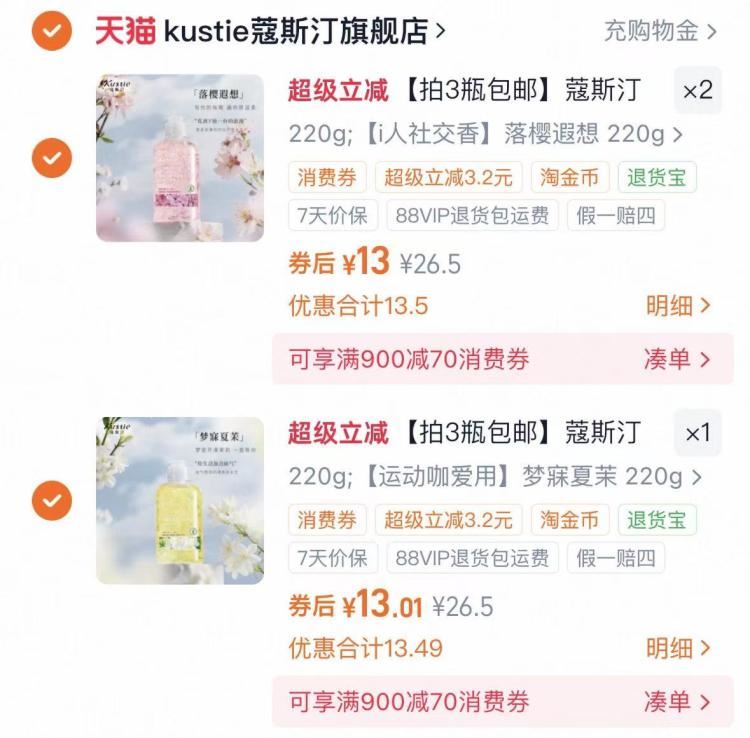 蔻斯汀沐浴露220g*3瓶39元 任选3件拍下,折合13块多/瓶 - 好单发报员 2025年12月27日 14:06 0 举报 蔻斯汀沐浴露220g*3瓶39元任选3件拍下,折合13块多/瓶-这个里面是真的有花瓣的在家就能体验正宗花瓣浴https://m.tb.cn/h.75gxNJG 复制文案