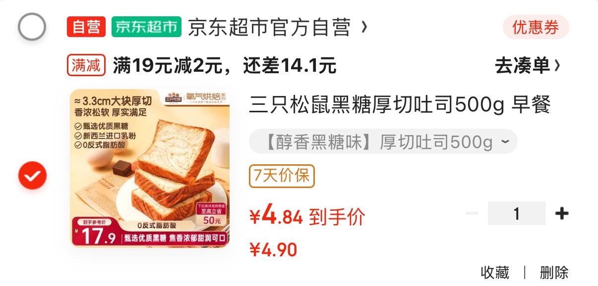 4.9亓三只松鼠黑糖厚切吐司500g,广州等地好单发报员2025年12月27日 17:580举报 4.9亓三只松鼠黑糖厚切吐司500g,广州等地https://u.jd.com/AayGqzJ 复制文案