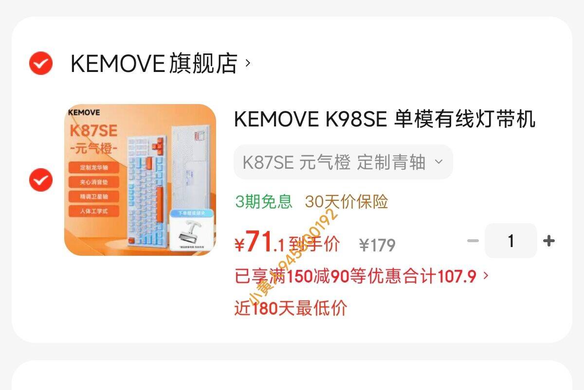 KEMOVE K98SE 单模有线灯带机械键盘客制化,71.1