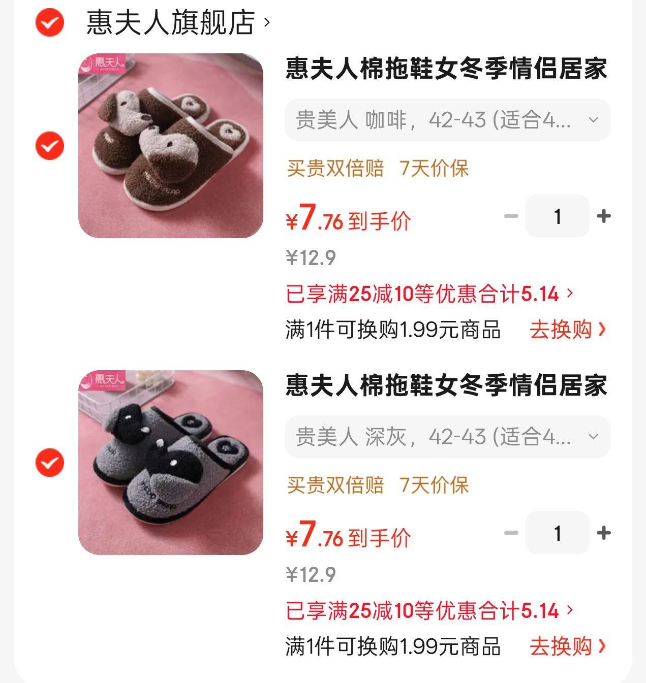 折7.9亓/双拖鞋“惠夫人” 毛绒棉拖鞋 拍2件15.8亓好单发报员2025年12月27日 19:200举报 折7.9亓/双拖鞋“惠夫人”毛绒棉拖鞋 拍2件15.8亓https://u.jd.com/AgyW2Sr复制文案