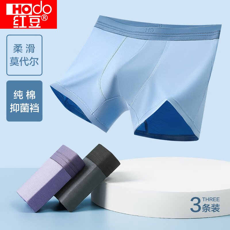 男士莫代尔抑菌内裤3条装