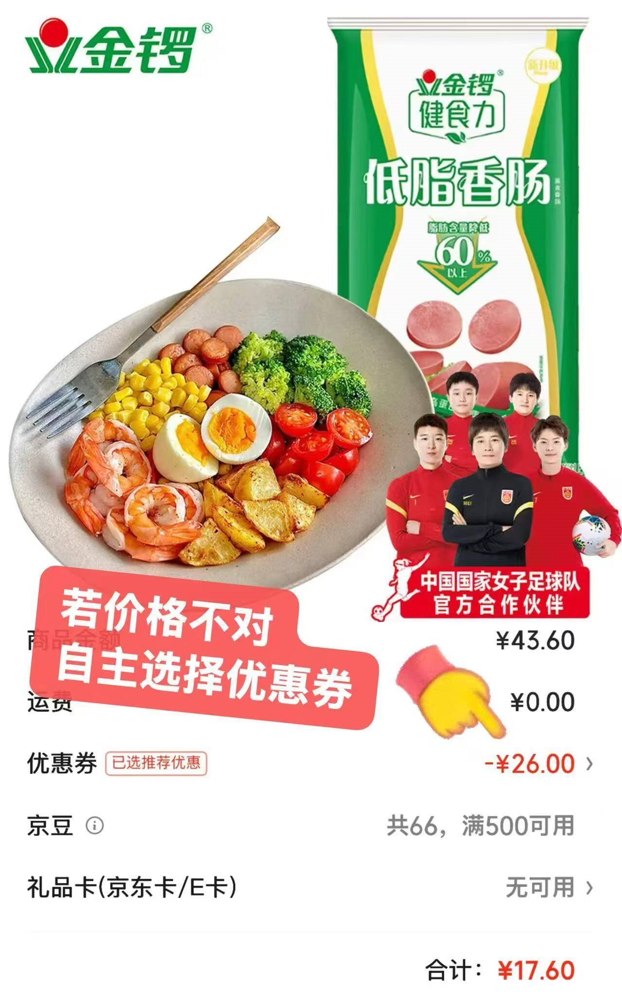 金锣火腿肠发車 金锣 健食力低脂香肠30g*8支 买4件17.6亓,才折4.4亓/件好单发报员2025年12月27日 19:580举报 ——金锣火腿肠发車——金锣 健食力低脂香肠30g*8支https://u.jd.com/AGypVBo买4件17.6亓,才折4.4亓/件*低脂高蛋白 轻盈美味无负担复制文案