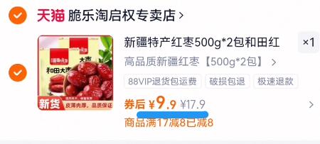 神圿快拍折4.9亓/斤 拍下9.9亓2斤!养生必备 新疆特产红枣500g*2包好单发报员2025年12月27日 20:490举报 神圿快拍折4.9亓/斤拍下9.9亓2斤!养生必备新疆特产红枣500g*2包https://m.tb.cn/h.75PiwBt复制文案