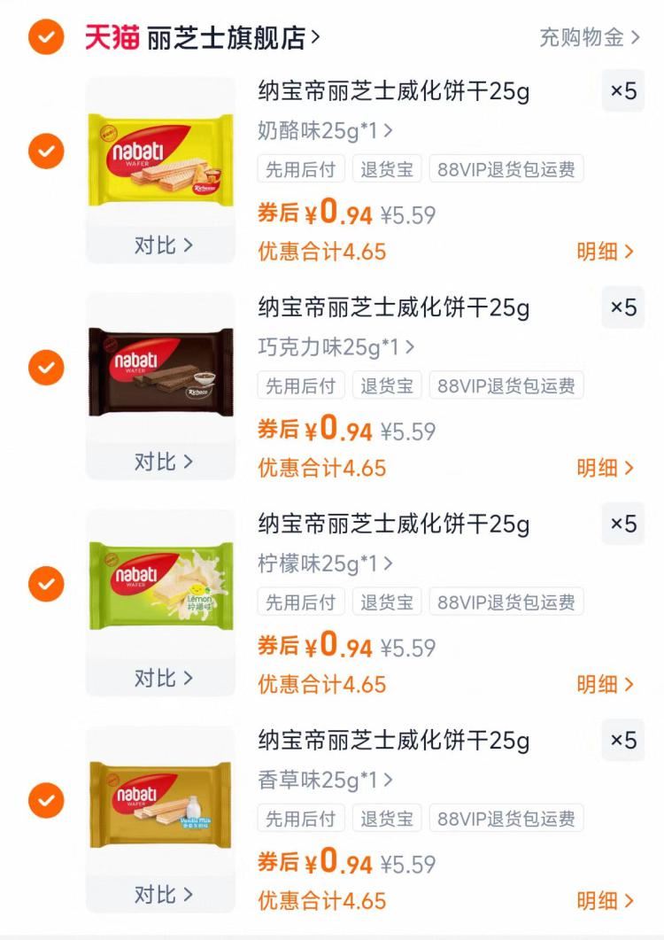到手一斤超市同窽饼干 爱吃冲 - 纳宝帝丽威化饼干20包19元.8好单发报员2025年12月27日 22:180举报 到手一斤超市同窽饼干 爱吃冲-纳宝帝丽威化饼干20包19元.8任选20件拍下成立,折0.9/包https://m.tb.cn/h.75wPKHV复制文案