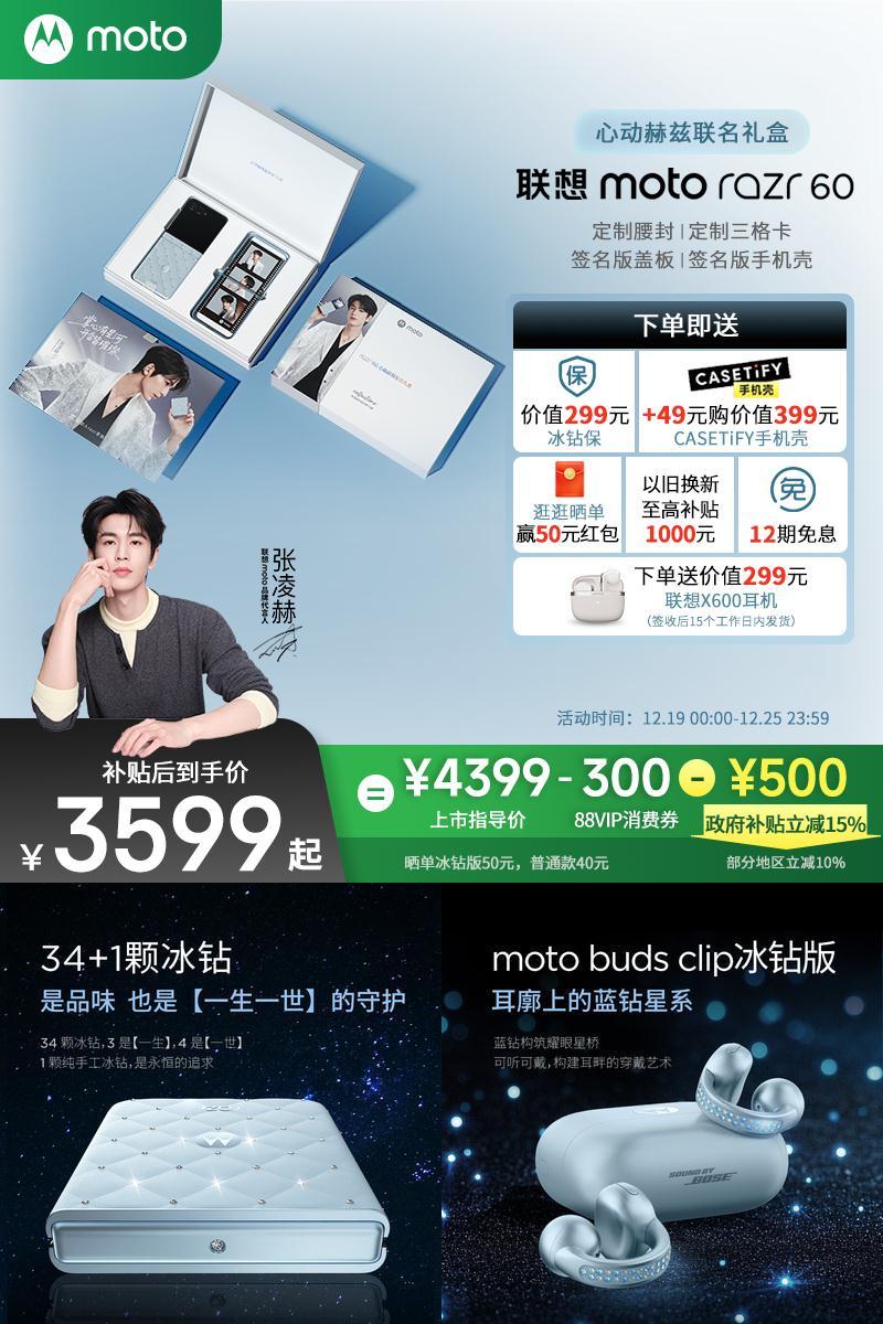 3499元 moto摩托罗拉旗舰店 张凌赫同款 政府补贴至高立减500元 联想moto Razr60 3.6英寸外屏折叠手机5000万主摄独家定制摩托罗拉