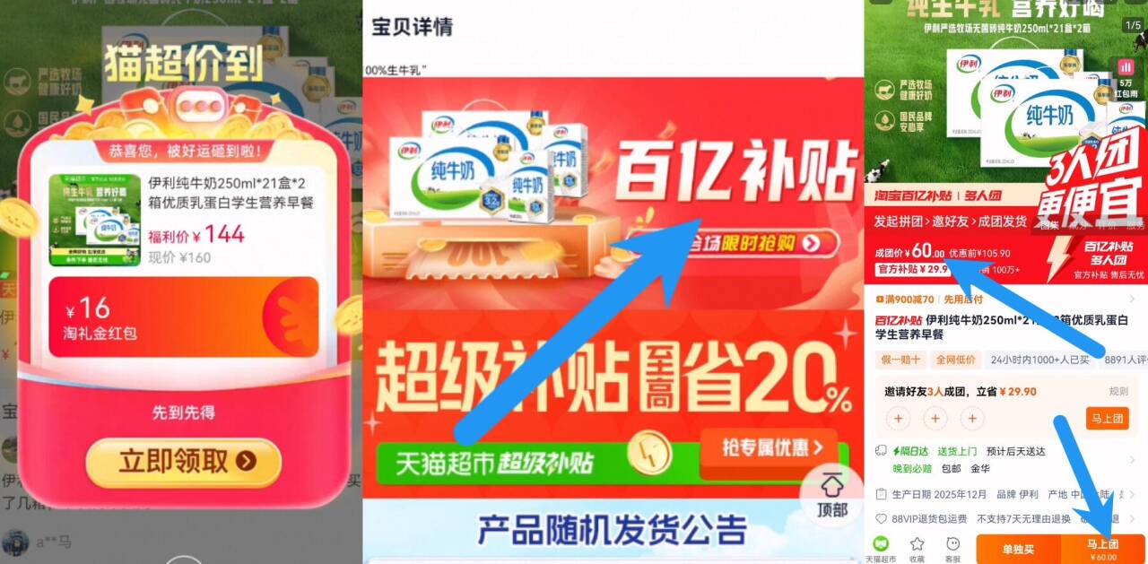 领礼金下拉拍三人团60亓 伊利 纯牛奶250ml*42盒 标题下有拼团,才1.4亓/盒 好单发报员 2025年12月28日 11:58 0 举报 领礼金下拉拍三人团60亓【伊利】纯牛奶250ml*42盒https://m.tb.cn/h.75jm4Qa标题下有拼团,才1.4亓/盒发给亲友们,随便拼一拼 复制文案