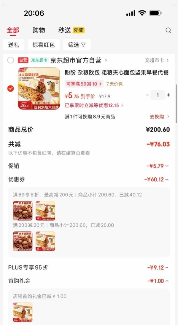 1首单,弹4立减,凑后【5.75】