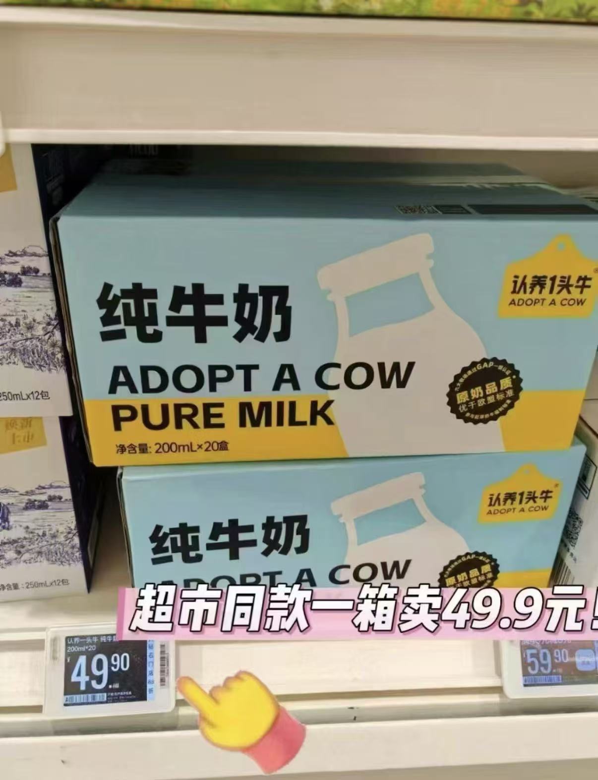 认养一头牛 全脂纯牛奶20盒
