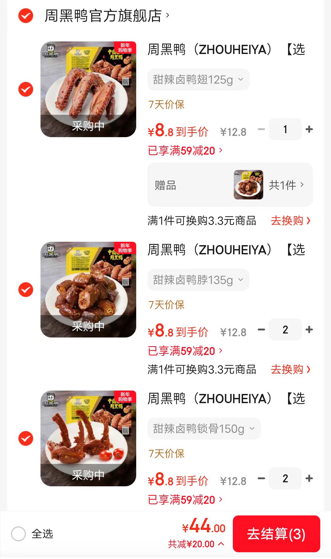 周黑鸭 锁鲜 甜辣卤鸭锁骨150g,任选5件【44】 赠1件,共6件
