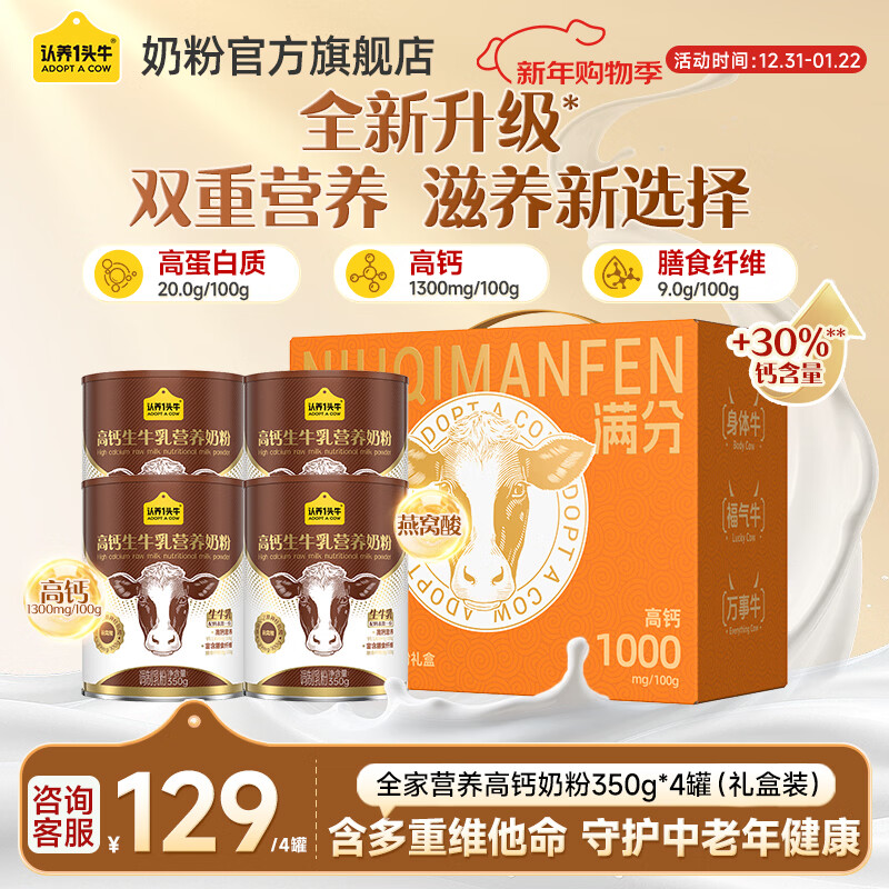 认养一头牛高钙营养奶粉350g4罐礼盒装