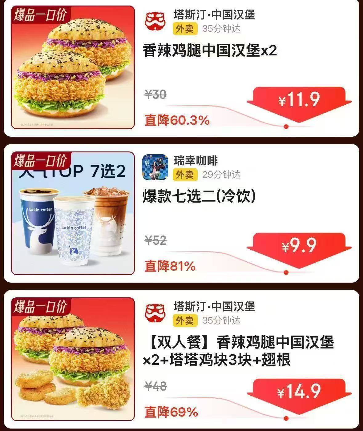 塔斯汀汉堡2个11元.9