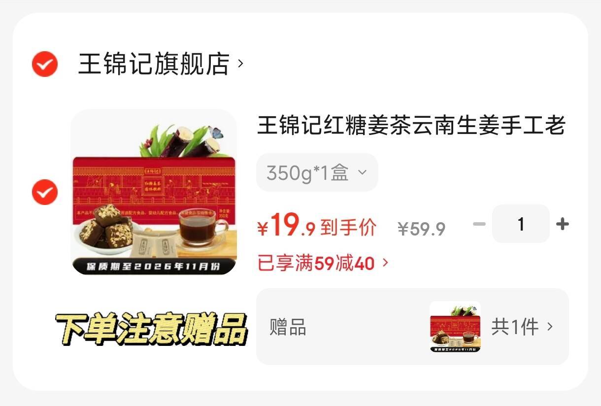 王锦记手工老红糖姜茶350g 买一送一19元.9,9.9/盒!好单发报员2026年01月04日 12:490举报 王锦记手工老红糖姜茶350g买一送一19元.9,9.9/盒!https://u.jd.com/AaXvFPU复制文案