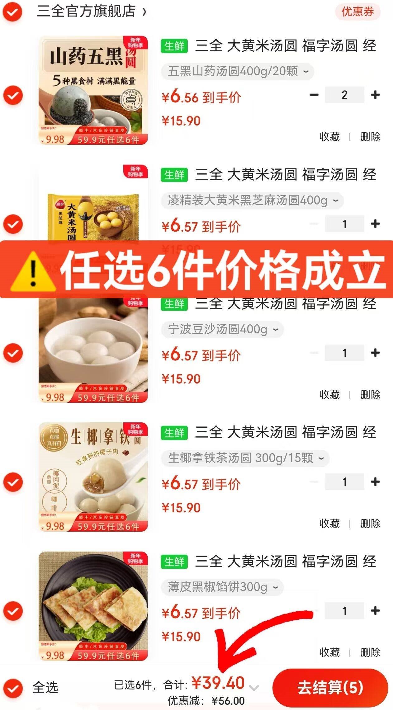 三全汤圆炒底忦 三全 甜点张仲景食养汤圆任选 任选6件39.4亓,之前要49亓好单发报员2026年01月04日 12:530举报 ——三全汤圆炒底忦——三全 甜点张仲景食养汤圆任选https://u.jd.com/AGXTr95任选6件39.4亓,之前要49亓*折6.5/件 有颜有料 款款好吃复制文案