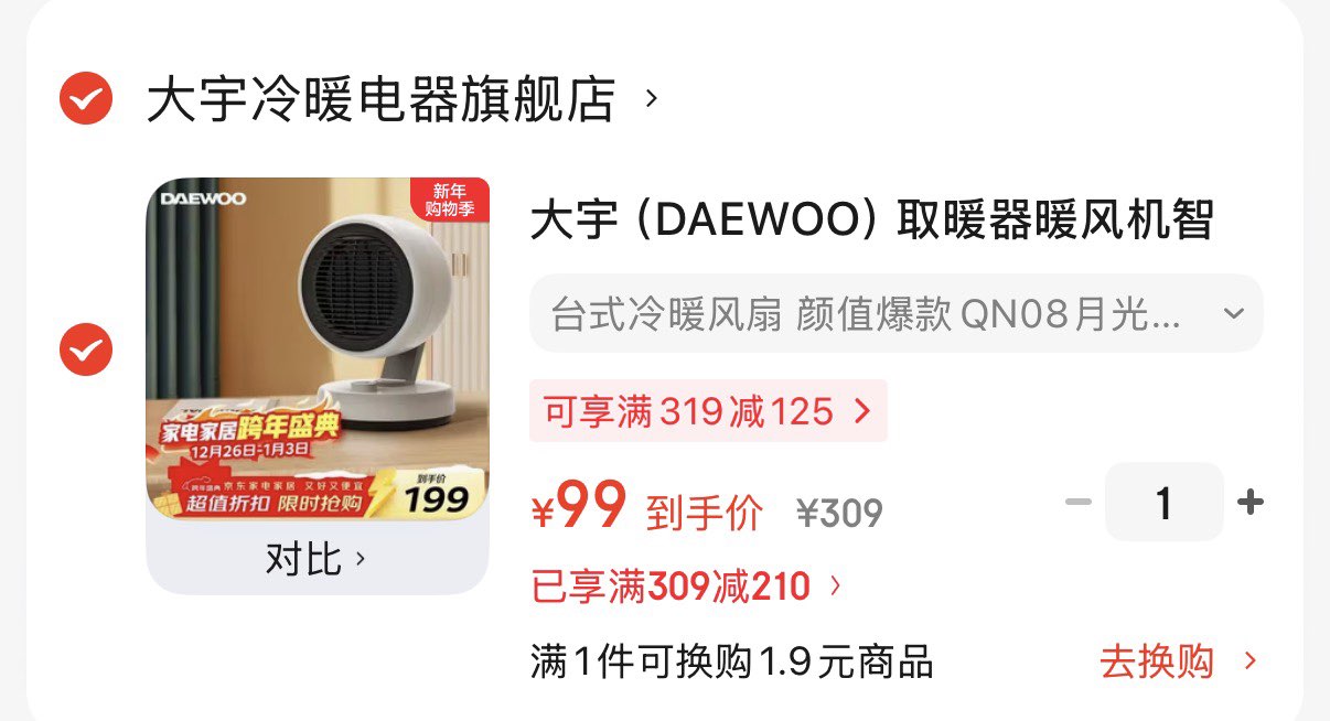 大宇速热台式冷暖风扇 99亓