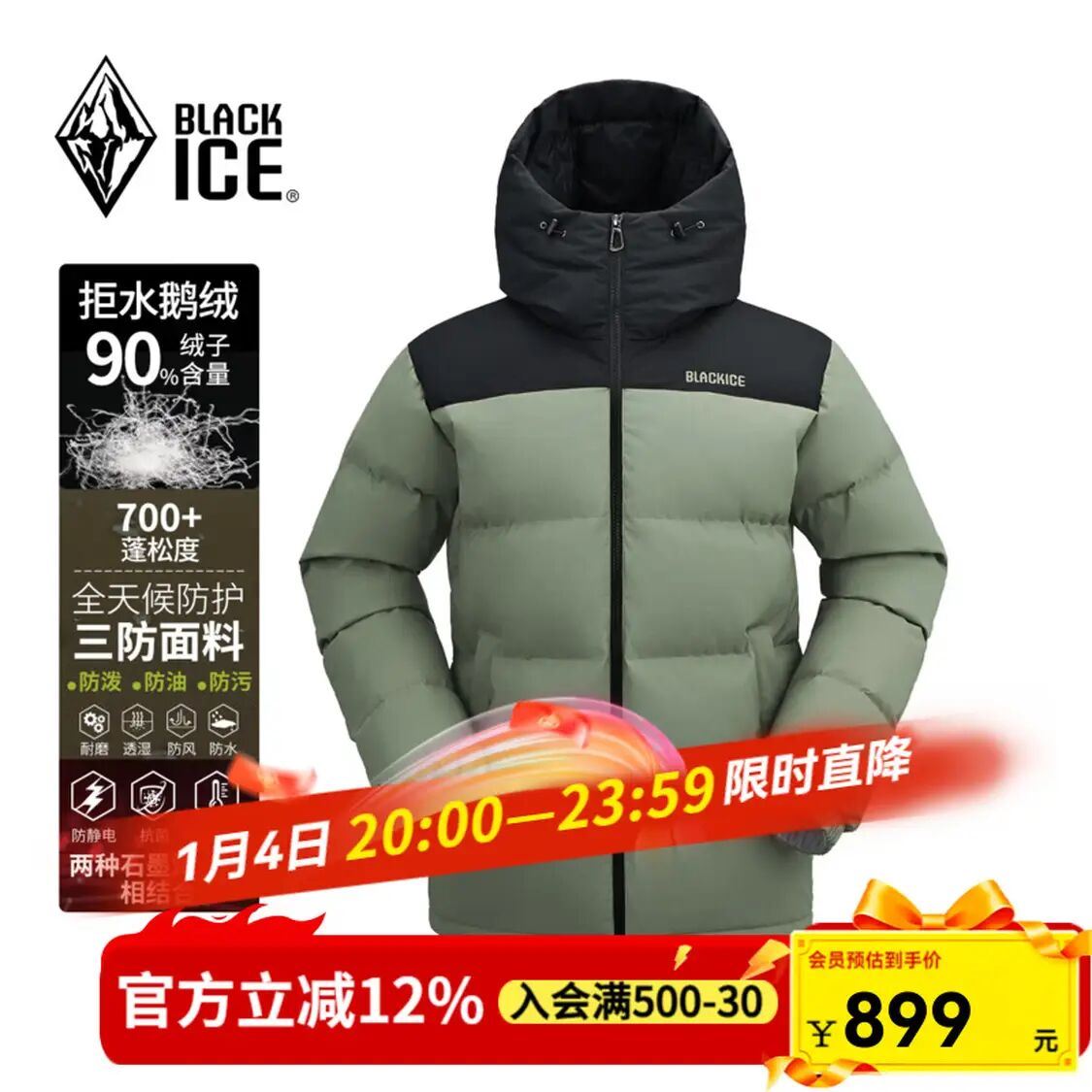 黑冰 男90%绒鹅绒羽绒服793元