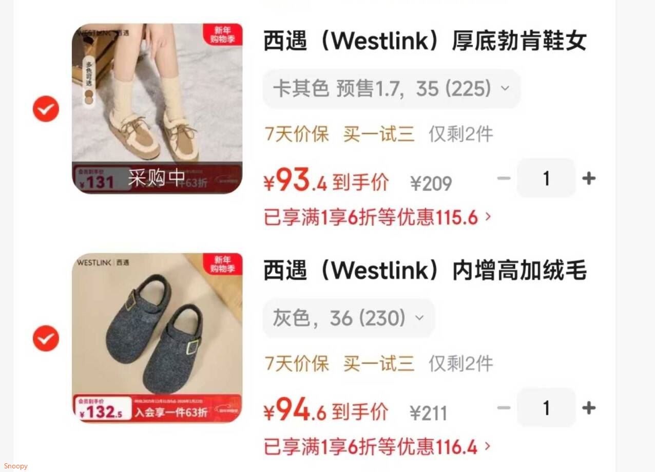 西遇 (Westlink)厚底勃肯鞋加绒毛毛雪地靴【93.4】