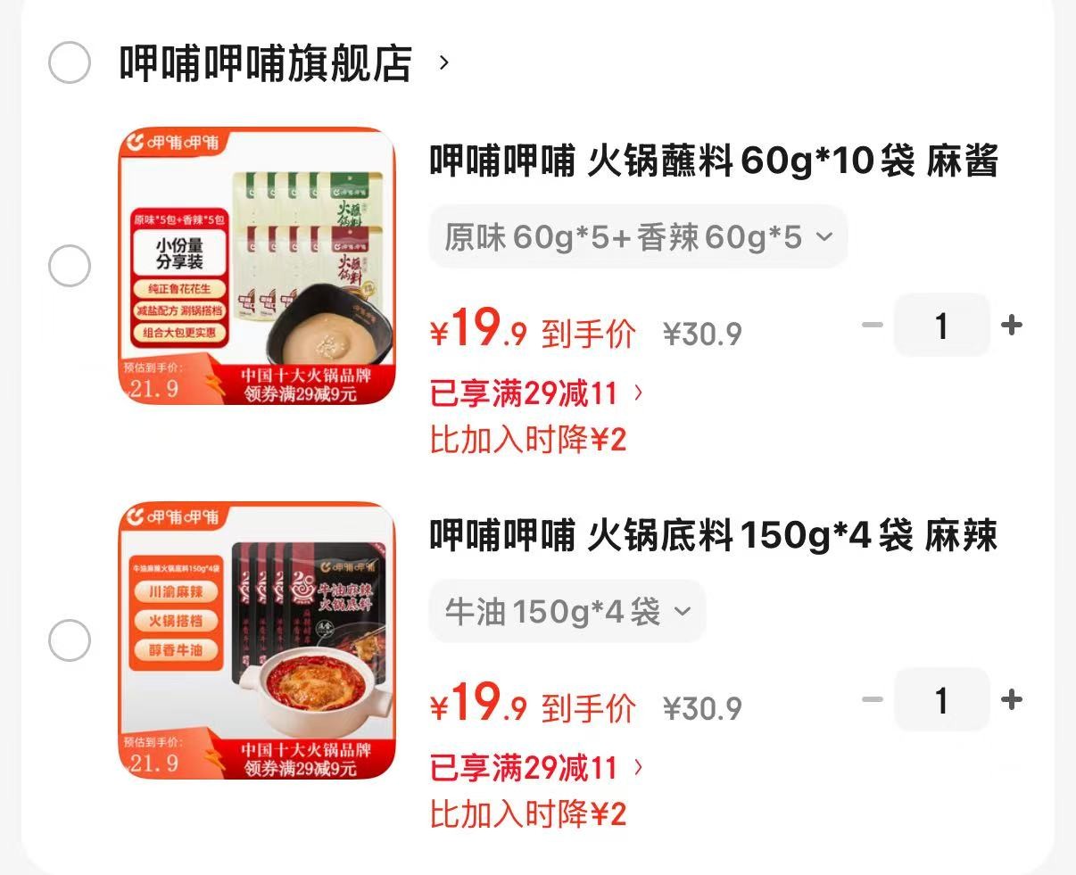 呷哺呷哺 牛油火锅底料150g*4袋【19.9】